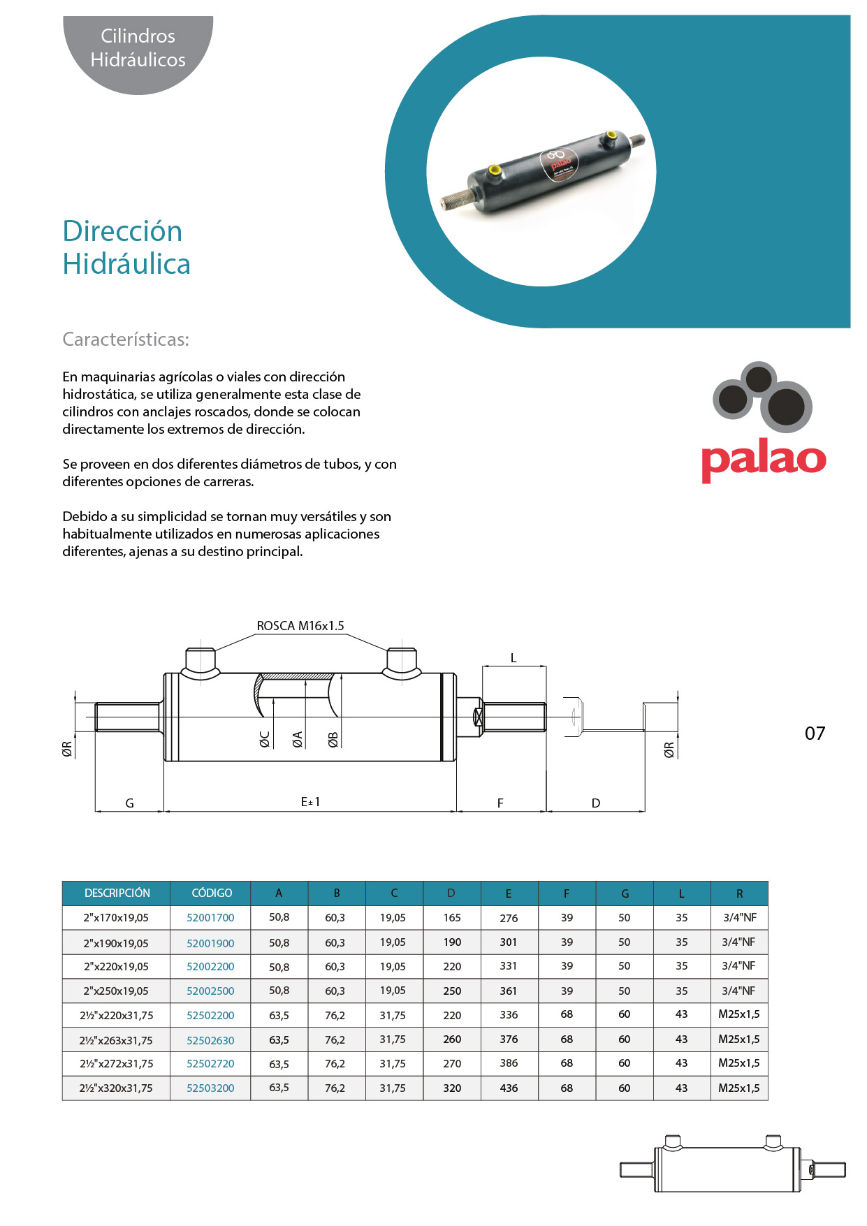 En maquinarias agrícolas o viales con dirección hidrostática, se utiliza generalmente esta clase de cilindros con anclajes roscados, donde se colocan directamente los extremos de dirección.