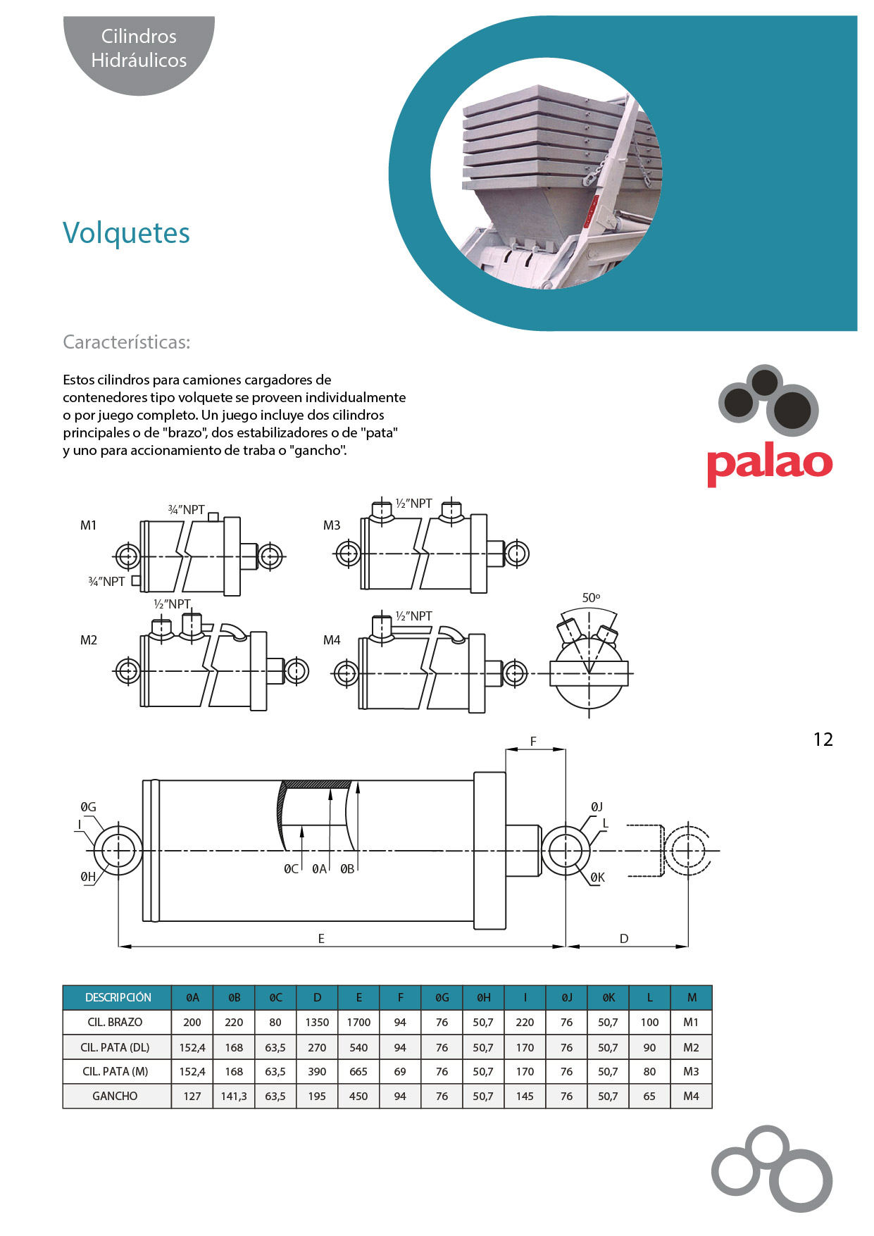 Estos cilindros para camiones cargadores de contenedores tipo volquete se proveen individualmente o por juego completo.